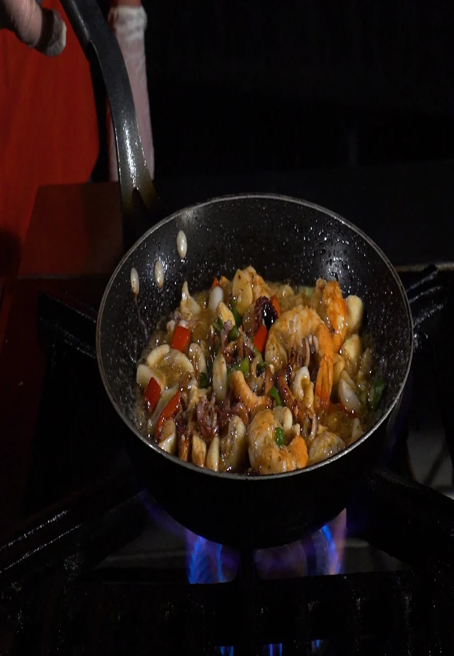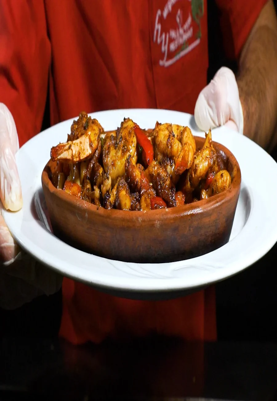 Sarımsak, domates, biber ve tereyağı soslu karides